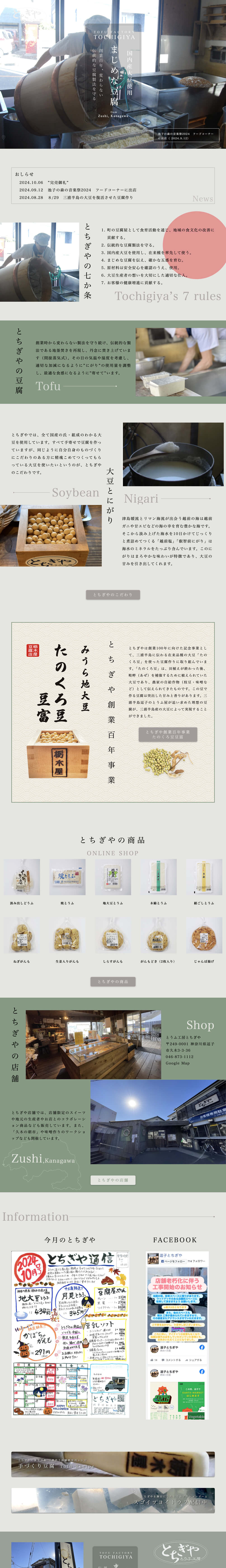 逗子にある創業百年の老舗のとうふ店「とちぎや」のWebサイトを制作させていただきました。