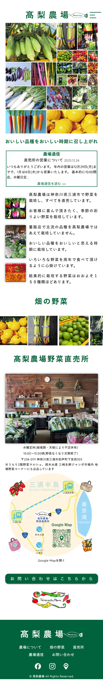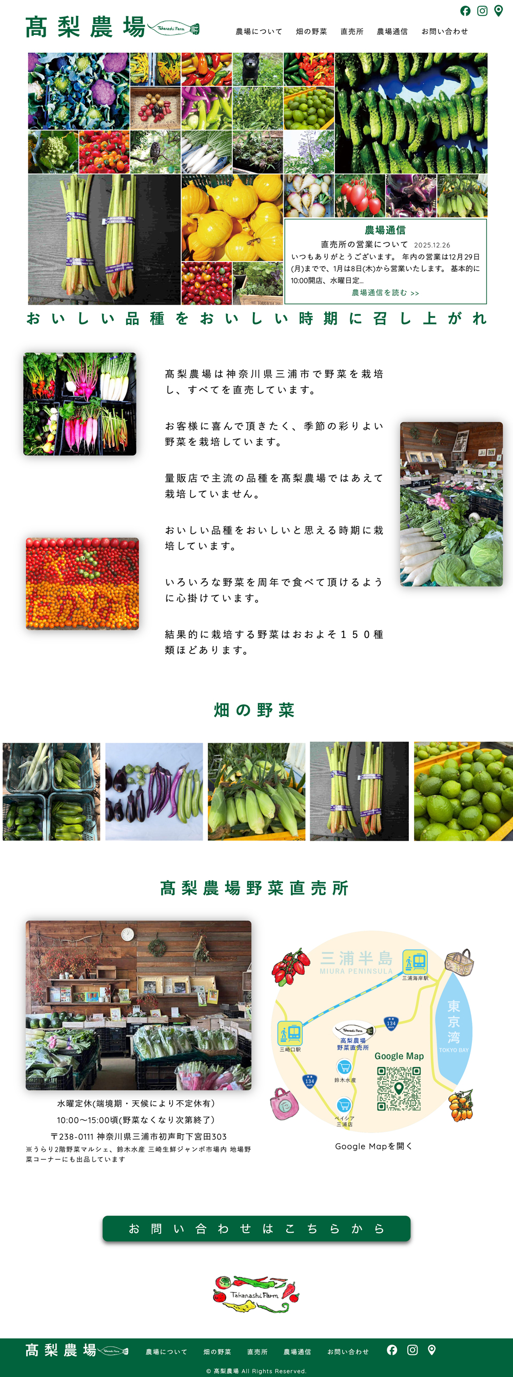 三浦半島食彩ネットワークの会長でもある高梨雅人さんが運営する高梨農場のWebサイトを制作させていただきました。
