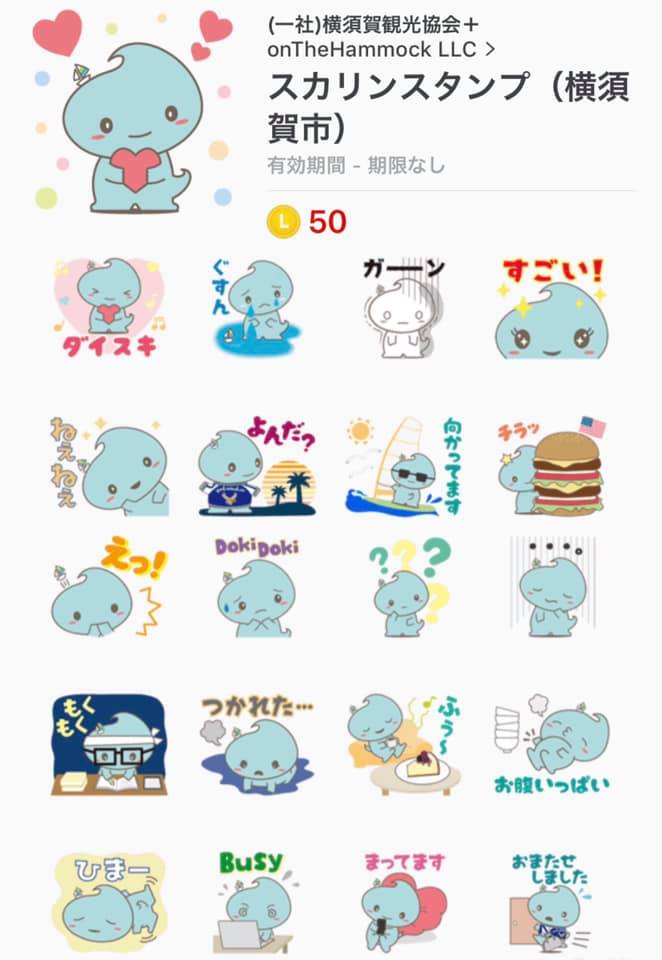 一般社団法人横須賀市観光協会の依頼により、横須賀市のご当地キャラ「スカリン」のLINEスタンプを制作させていただきました。