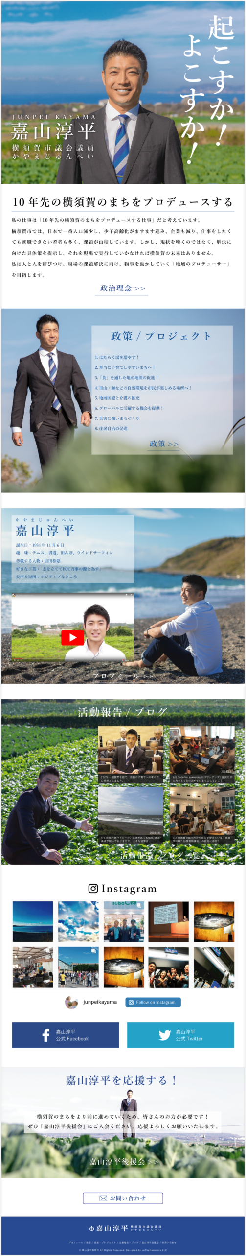 横須賀市議会議員・社会起業家である嘉山淳平さんのWebサイトを制作させていただきました。