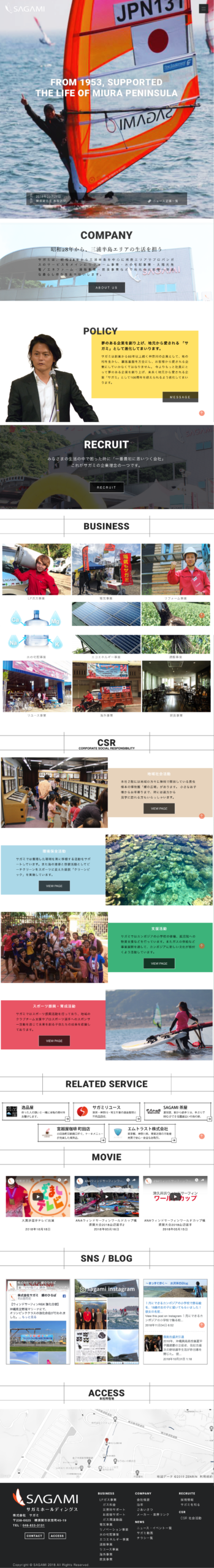 LPガスをはじめ三浦半島のインフラストラクチャーをサポートするサガミホールディングス様のWebサイトを制作させていただきました。多彩な事業やCSR事業、その長きに亘る歴史の紹介、そして動画やチラシなどボリュームたっぷり、見応えのあるコーポレイトサイトとなっています。