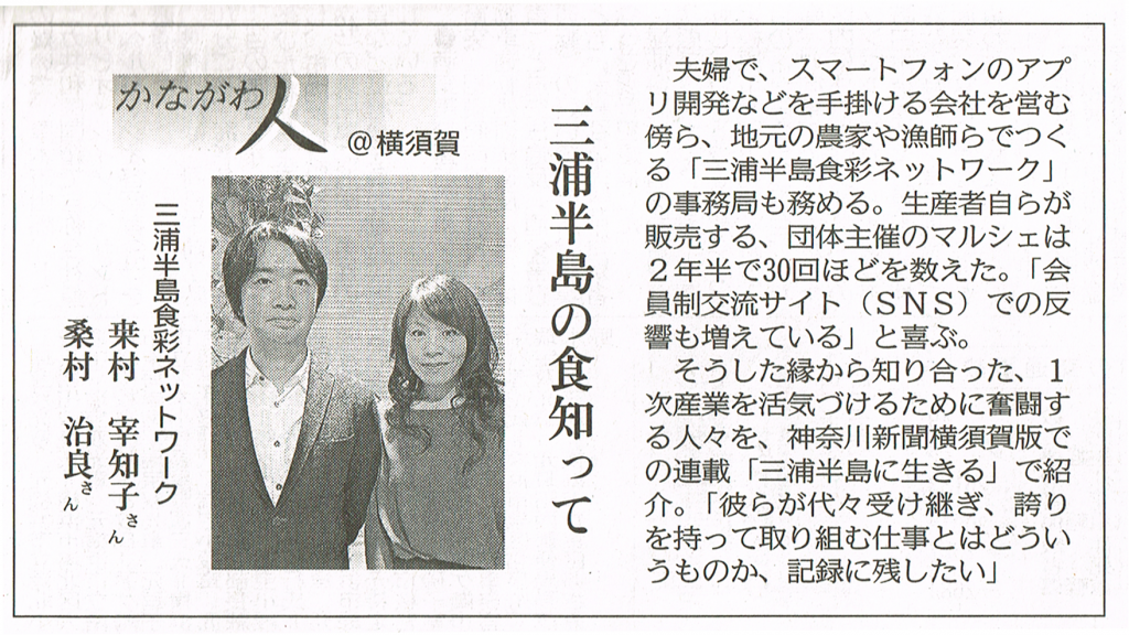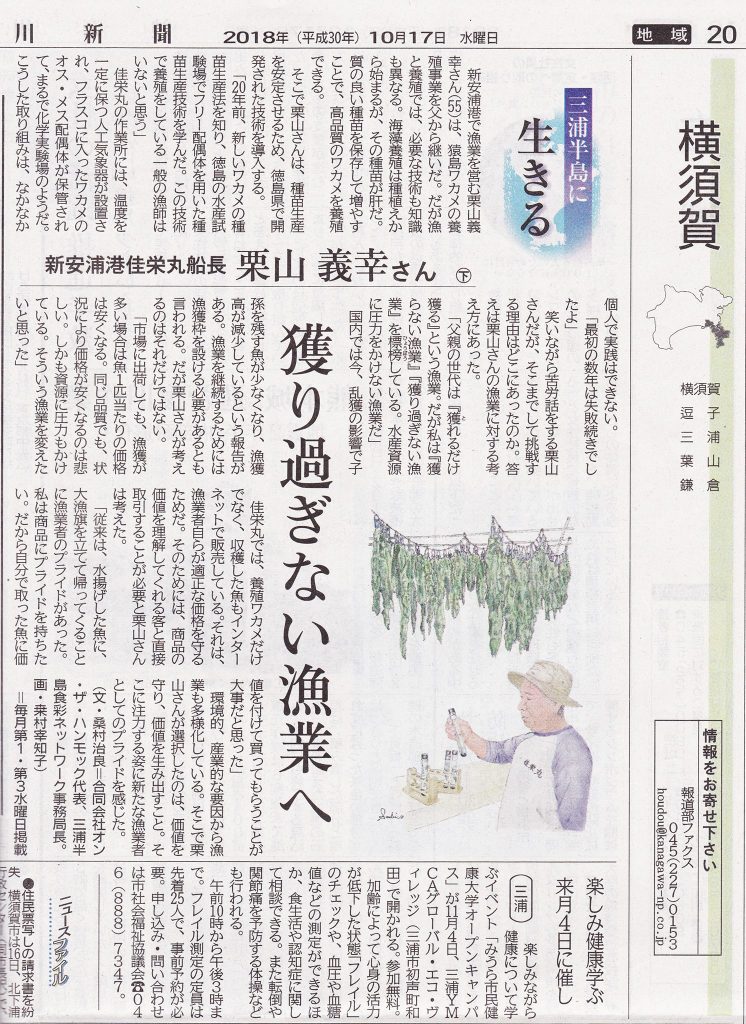 The series column“Living in the Miura Peninsula” in Kanagawa newspaper started from 10/3.