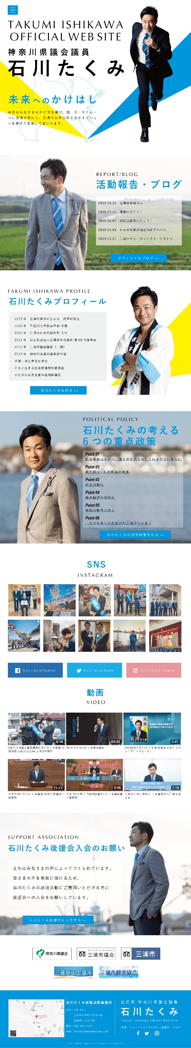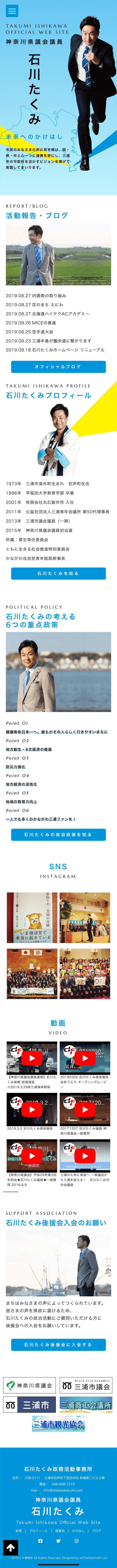 The official website of Takumi Ishikawa, member of the Kanagawa Prefectural Assembly, has been created. It has become a lively website, like Ishikawa. Please take a look.