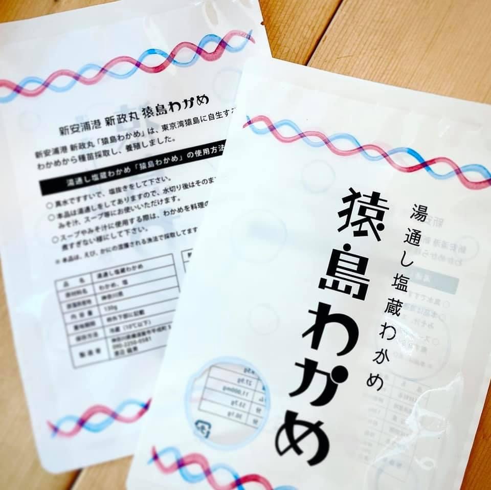 Shinseimaru seaweed package design 2021/01/16 We created a package for Sarushima wakame (seaweed) for Shin Yasuura Port Shinsei Maru in Yokosuka City. While many seaweed packages use greenish-blue colors, we dared to use white as the precious color for the design.
