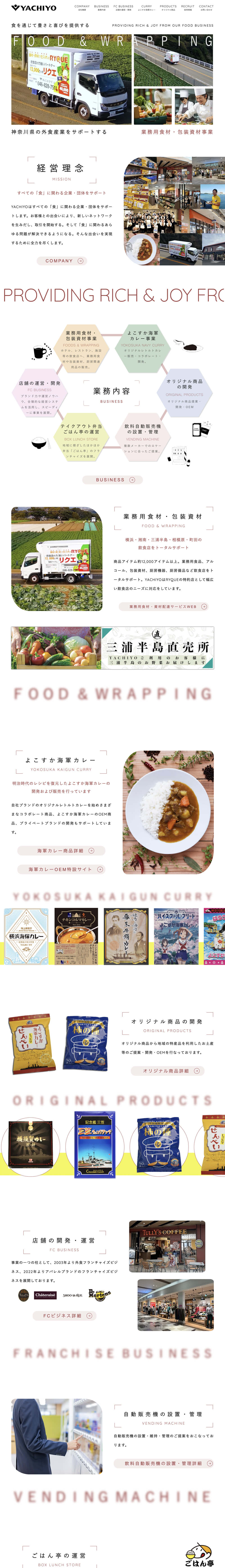 本Webサイトは「業務用食材・包装資材」「よこすか海軍カレー事業」「FCビジネス事業」など多角的に展開される同社の事業を包括的に紹介するものとなっています。